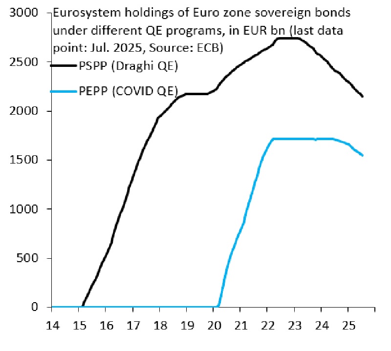 La crise actuelle en France illustre bien le problème. En maintenant une dette importante à son bilan, la BCE maintient les rendements obligataires à long terme artificiellement bas.